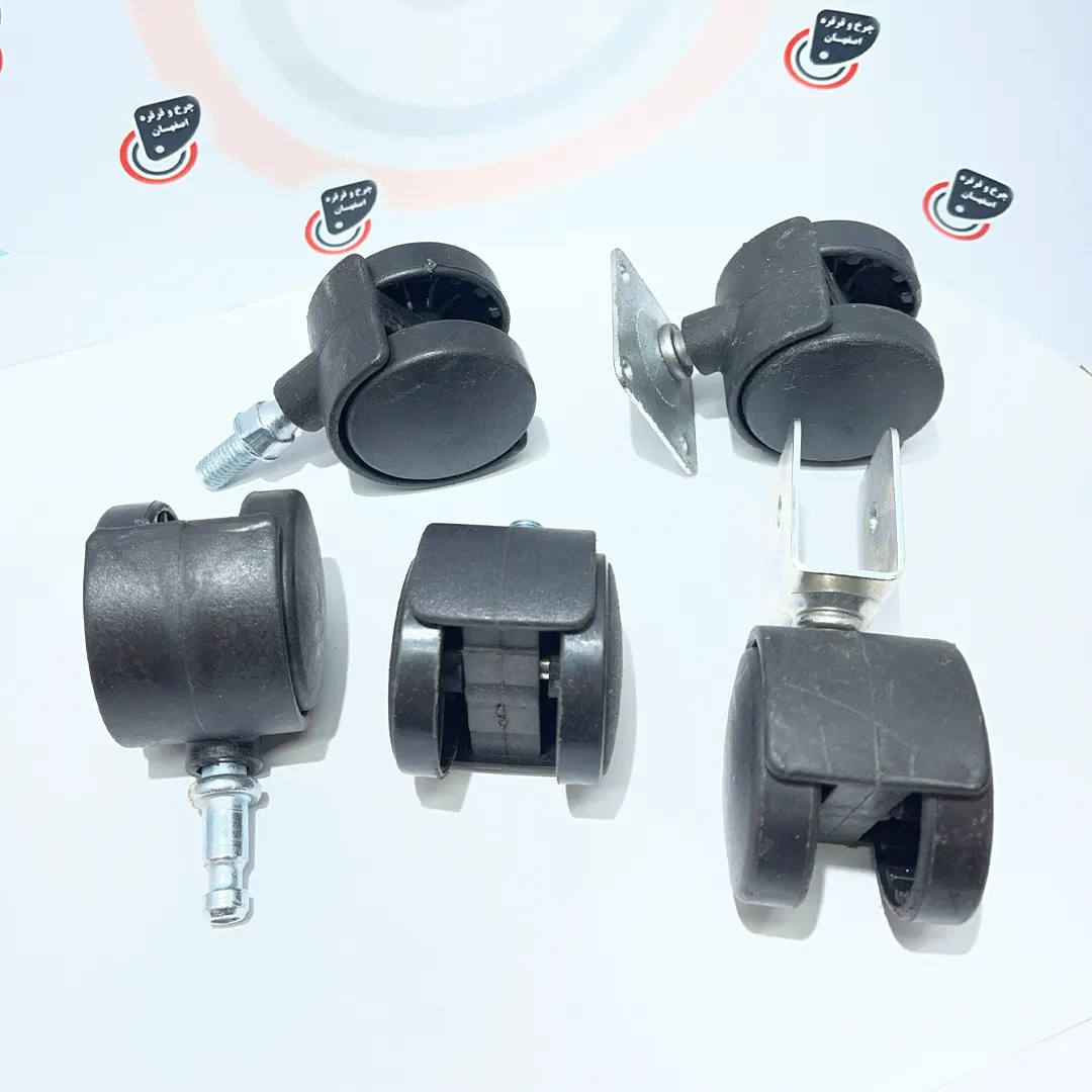 چرخ دوقلو یکی از اجزای مهم صندلیهای اداری حرفهای است که حرکت روان و بیصدا را فراهم میکند. این چرخها معمولاً از پلاستیک باکیفیت ساخته میشوند، اصطکاک کمی با سطح دارند و بهراحتی قابل تعویض هستند. دوام بالا باعث میشود بهندرت دچار خرابی شوند. قطر آنها ۵ سانتیمتر است، حدود ۳۰ کیلوگرم وزن را تحمل میکنند و با چرخش ۳۶۰ درجه، جابهجایی آسان صندلی را در همه جهات ممکن میسازند. رنگ مشکی مات آنها ظاهری اداری و شیک دارد و برای محیطهای کاری انتخابی و مقرونبهصرفه محسوب میشوند.